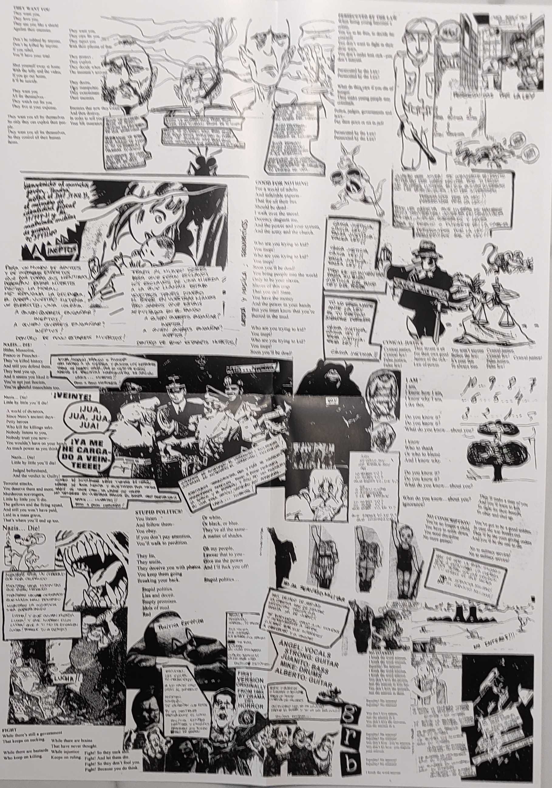 It comes with a 2-sided poster insert, on glossy paper, with lyrics in Spanish and English + some artworks of the zine originally included in the DRAMA DEL HORROR 1985 1st run TAPE version.